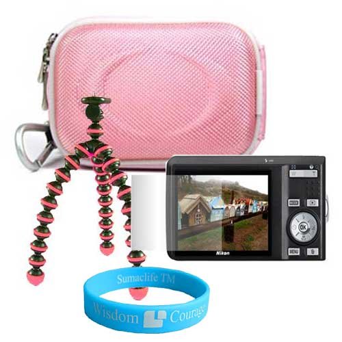 CanonPowershot Pink Tripod for SD40 , SD30, SD950 , SD900 , SD890 IS, SD880 IS + Nylon Light Pink Camera Case + Screen Protector + Wisdom * Courage Wristband Overview